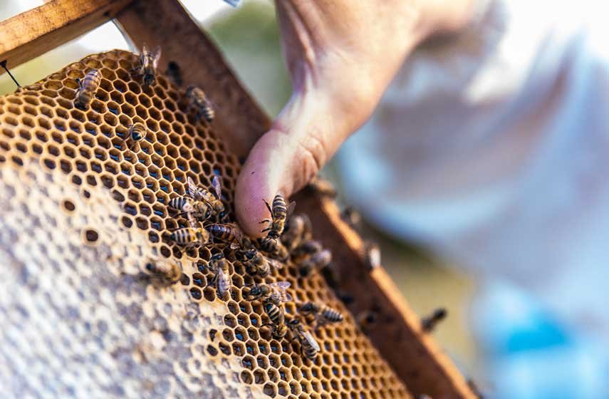 Colmenas seguras que permiten polinización sin ataques de osos.