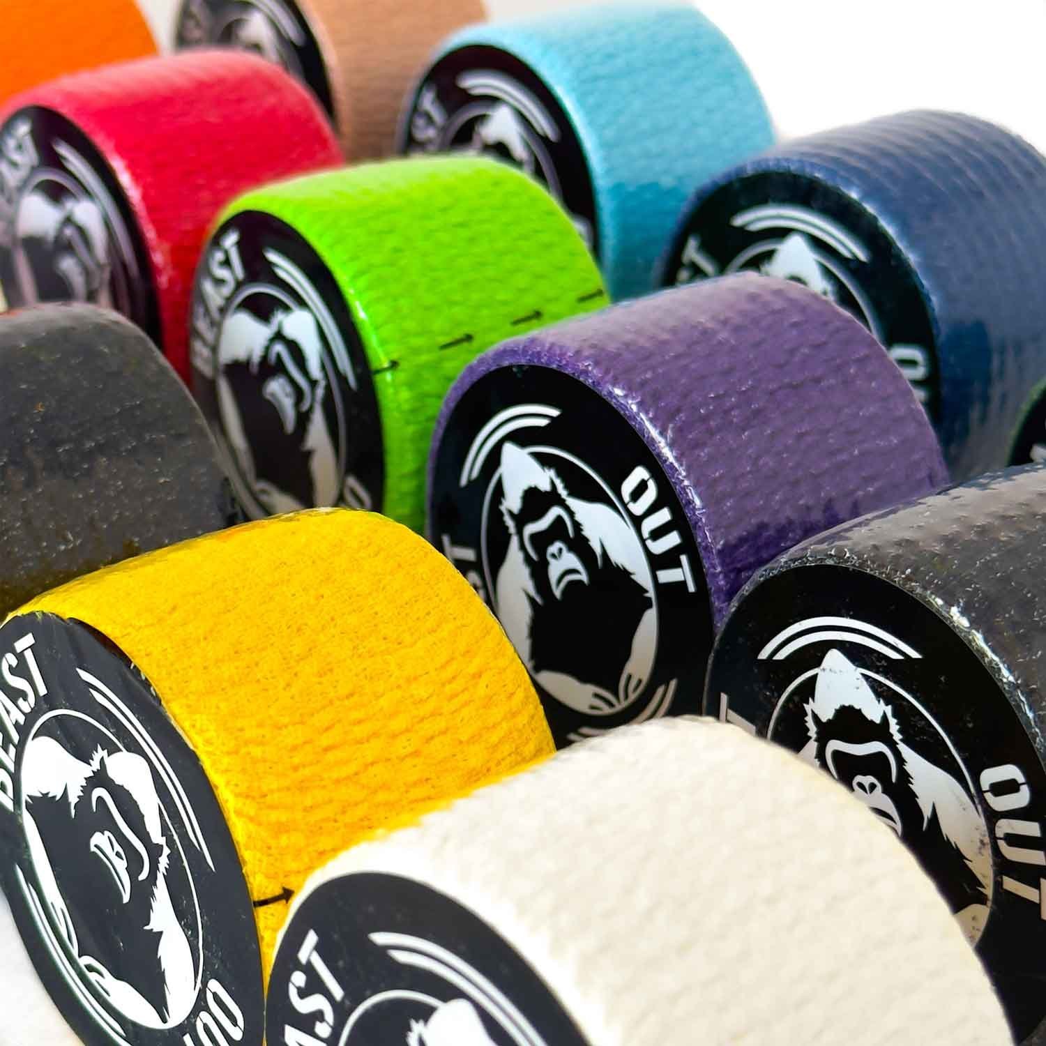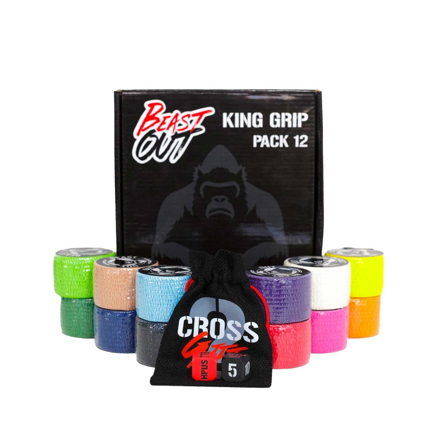Descubre el poder de BeastOut King Grip Pack. 12 tapes deportivos multicolor diseñados para proporcionar un agarre superior, resistencia al agua y sudor, y comodidad máxima en cada entrenamiento. Con 6 metros de longitud, estos tapes ofrecen más protección que la competencia, e incluyen un juego de dados de ejercicios y una bolsa de transporte. ¡Siente la diferencia y supera tus límites!